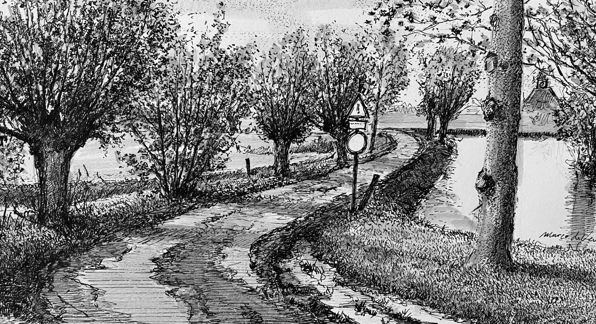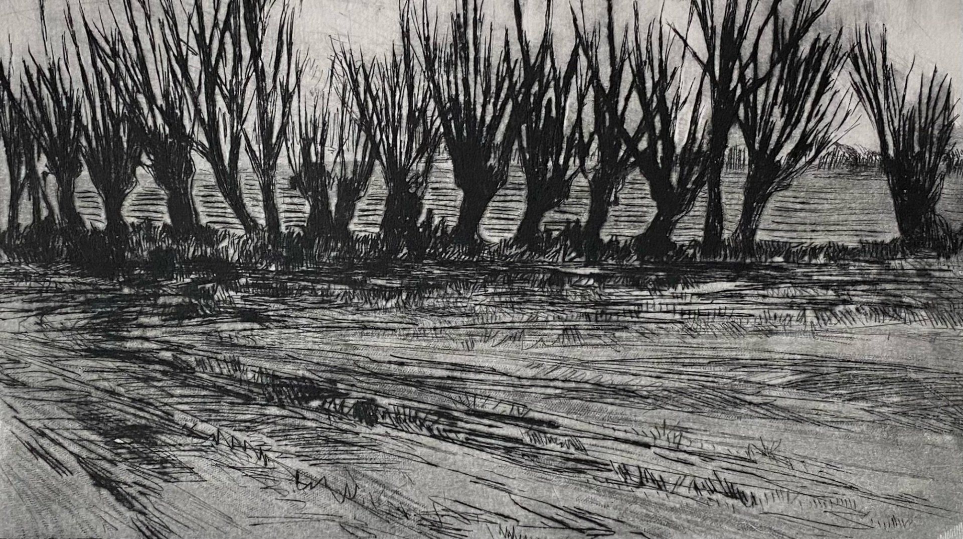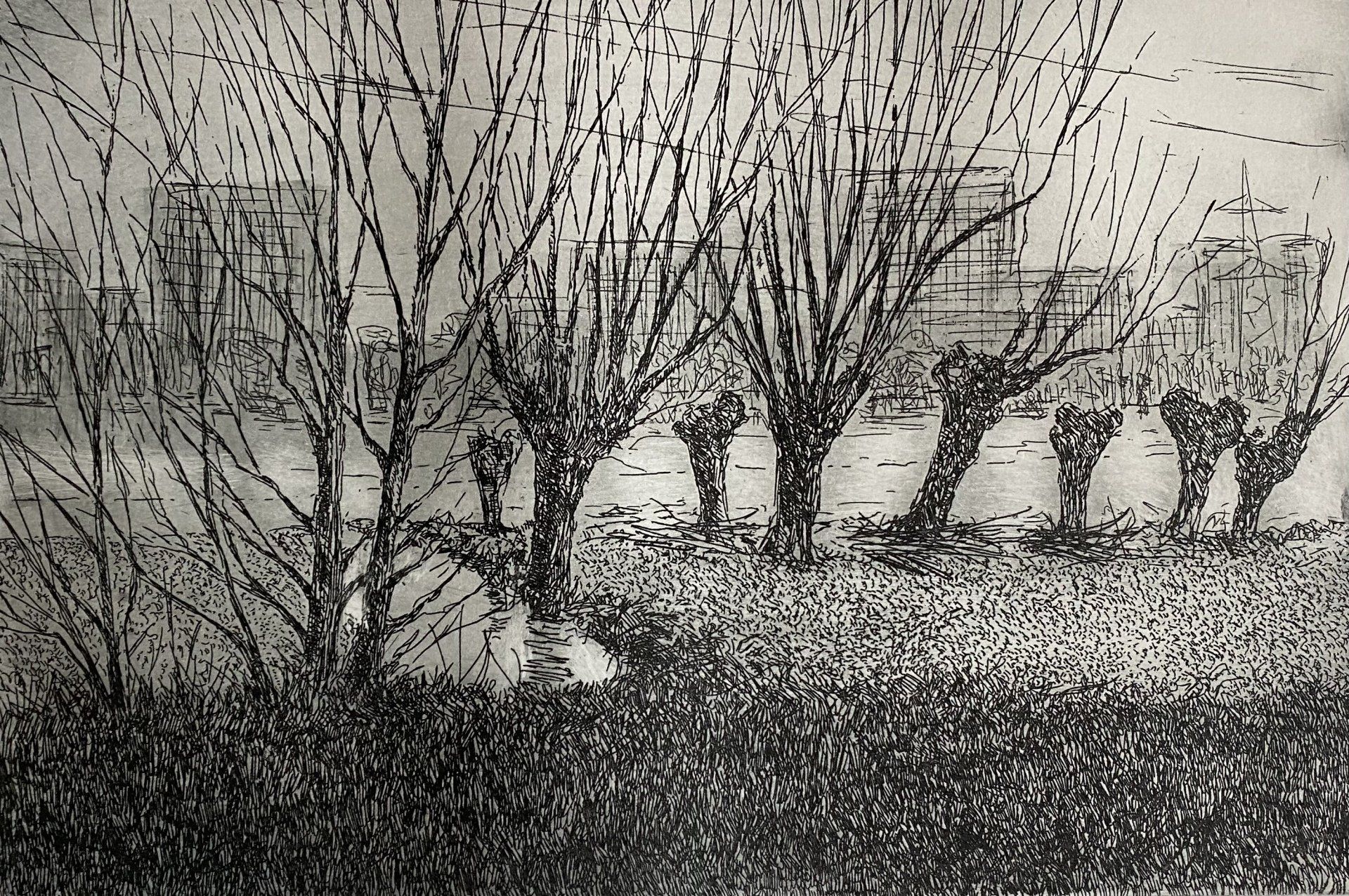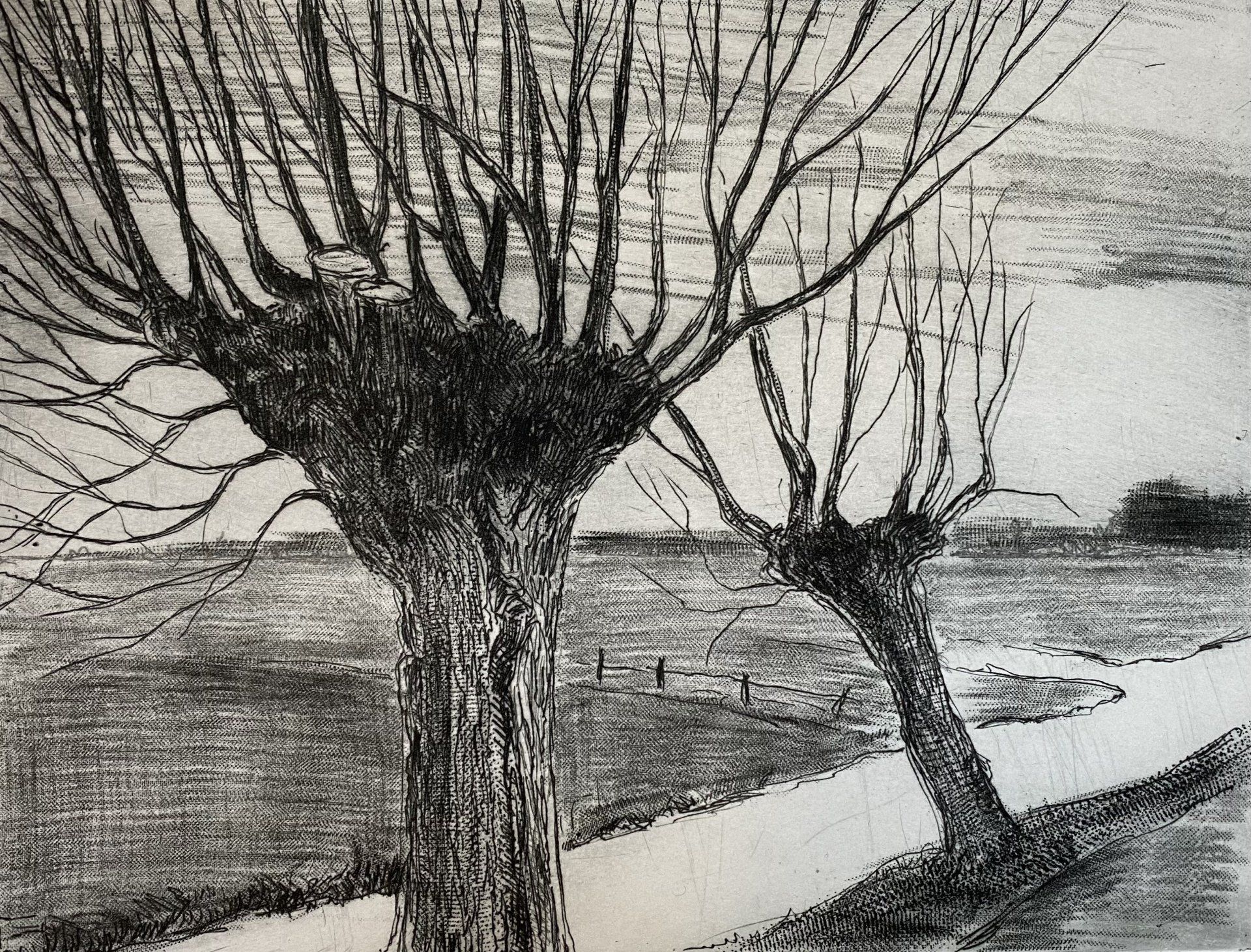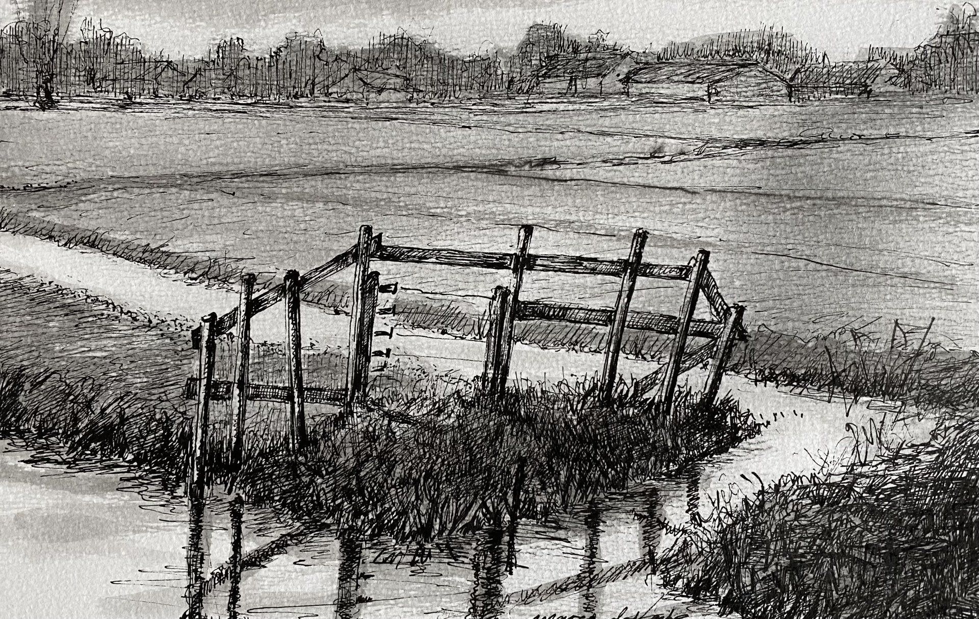 bestaat uit tekeningen en etsen die nu nog het beeld schetsen van een oude polder. Met hier en daar een doorzicht naar de oprukkende stad.